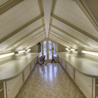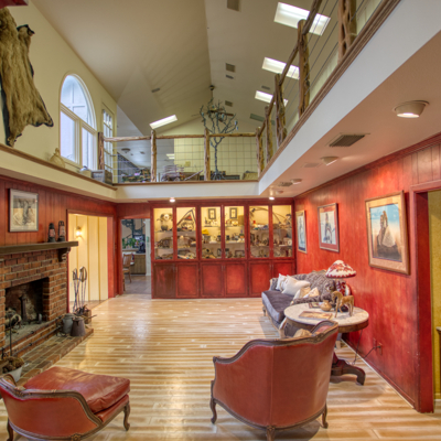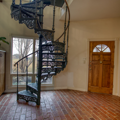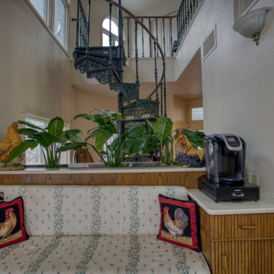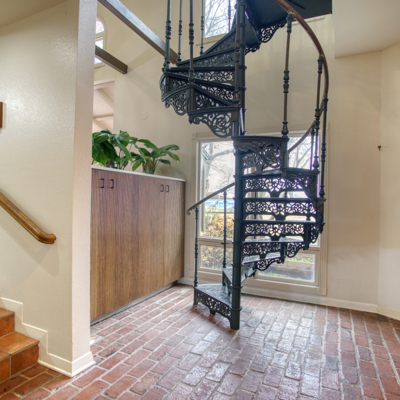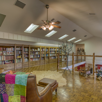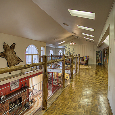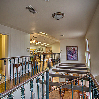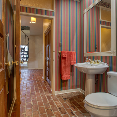 Escape to your loft retreat upstairs using the beautiful wrought iron spiral staircase from London. Leave your large game/ library/ play room to relax on the second story balcony. Come in to enjoy your dollhouse style craft/ play room with shelving and storage or work in your upstairs office. At the top of the main stairs is powder room.