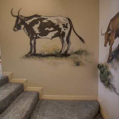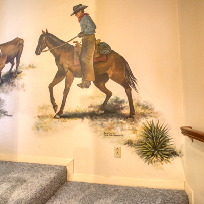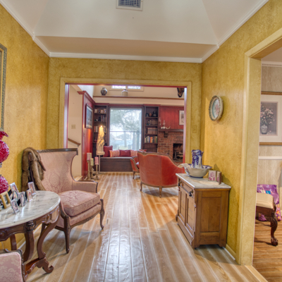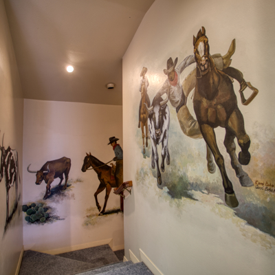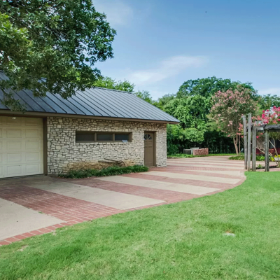 UNIQUE FIND with lots of character and colorful charm! Take a peaceful walk around the estate on brick from Old Camp Bowie Blvd., relax by the gas fireplace surrounded by brick from the historic Swift and Armour Meat Packing Plants near the Ft. Worth Stockyards, or go back in time with a western mural painted by Carol Bobo Newsome adorning the walls of the main staircase.